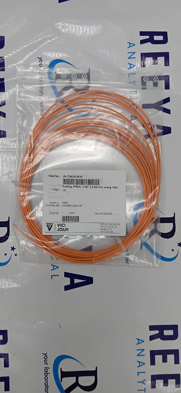 The Vici Jour JR-T-6010-M10 Orange Tubing is a laboratory-grade PEEK tubing roll widely used in analytical instruments.
